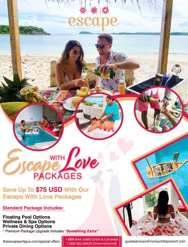 The Escape at Nonsuch Bay’s spectacular setting and ambience is the ideal stage to pop the question, take your vows or just to celebrate your love. Our goal is to provide the ultimate All-Inclusive, adult only Caribbean vacation for couples. Private dinners, floating pool dining options, romantic sunset activities and tropical floral baths are yours to experience at this exotic Caribbean resort.
