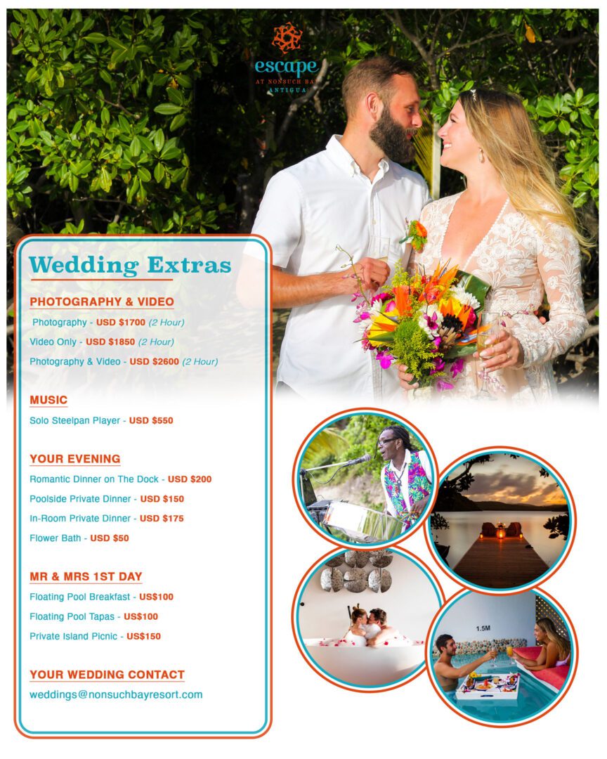 With your documents in hand The Escape at Nonsuch can provide a Caribbean wedding package that includes: